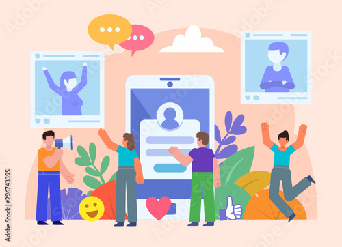 Люди, вовлеченные в избирательный процесс. Векторная плоская иллюстрация избирательной кампании и голосования. Политический кандидат делает заявление, избиратели на избирательном участке, предвыборная агитация, пикет, митинг.