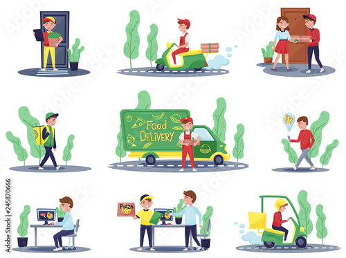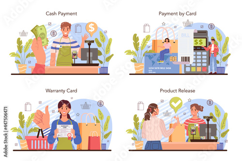 Векторная иллюстрация людей, делающих покупки в продуктовом магазине или на рынке. Символы людей, совершающих покупки, значки, выделенные на белом фоне. Дизайн в плоском стиле.