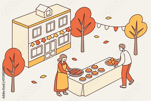 Люди делают клубничный джем, плоская векторная иллюстрация. Органический фруктовый джем, домашняя еда, производство сладких десертов.