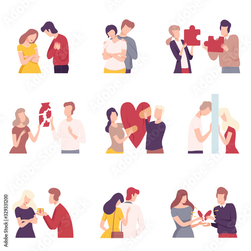 Люди закрывают глаза, рот руками и затыкают уши пальцами, игнорируя других и не обращая внимания на собеседника, плоская векторная изолированная иллюстрация. Пренебрежение, несогласие, отказ, отрицание.
