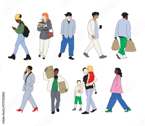 Люди разных профессий, плоская векторная иллюстрация. Стюардесса, иллюзионист, врач, пчеловод, охранник, рабочий-фермер, персонажи мультфильмов мужского и женского пола, одетые в униформу.