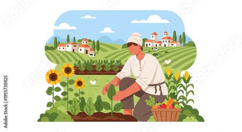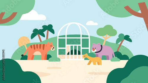 Набор для барбекю, векторная плоская иллюстрация. Пикник с семьей, друзьями и домашними животными в парке, на заднем дворе. Пожилые и молодые пары, семья с двумя детьми готовят мясо на гриле барбекю, едят и веселятся.