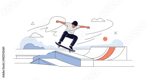Люди, играющие в бадминтон, вектор. Иллюстрация летней спортивной игры. Молодая пара мужчина и женщина наслаждаются отдыхом и активным досугом в летнее время. Здоровый образ жизни, хорошее самочувствие и спортивное хобби