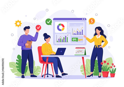Люди, играющие в интернет-игровой автомат, используя портативный компьютер, плоская векторная иллюстрация. Бизнес казино. Джекпот в игровых автоматах. Азартные игры в онлайн-казино.