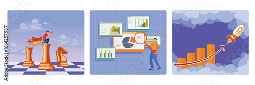 Поездка на американских горках, плоская векторная иллюстрация. Счастливые возбужденные люди катаются на американских горках на быстром открытом поезде. Ярмарочная площадь, аттракцион в парке развлечений. Развлечения, досуговая деятельность.