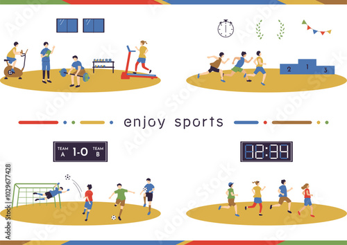 Поездка на американских горках, плоская векторная иллюстрация. Счастливые возбужденные люди катаются на американских горках в скоростном открытом поезде. Ярмарочная площадь, аттракцион парка развлечений. Развлечения, досуг.
