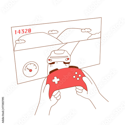 Поездка на американских горках, плоская векторная иллюстрация. Счастливые возбужденные люди едут на быстрых открытых автомобилях. Ярмарочная площадь, аттракцион парка развлечений. Развлечения, досуг.