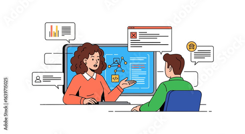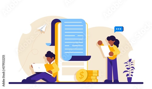 Люди, отправляющие и получающие сообщения электронной почты, плоская векторная изолированная иллюстрация. Электронная почта. Онлайн-общение, цифровая коммуникация.