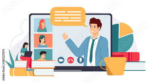 Векторная иллюстрация женщины-кассира продуктового магазина и мужчины-покупателя, оплачивающего покупки. Люди покупают элемент дизайна в плоском стиле, значок, выделенный на белом фоне.