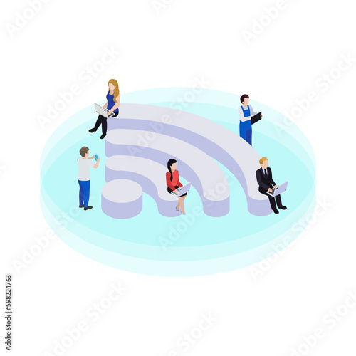 Люди-зрители наслаждаются световым шоу дронов, плоской векторной изометрической иллюстрацией. Дисплей дрона.
