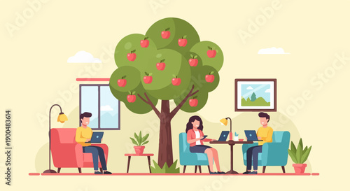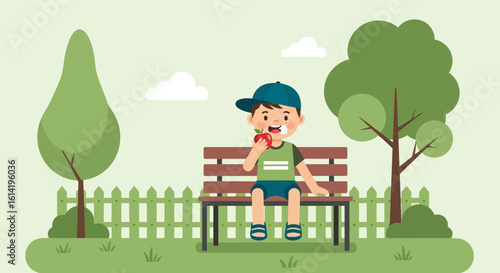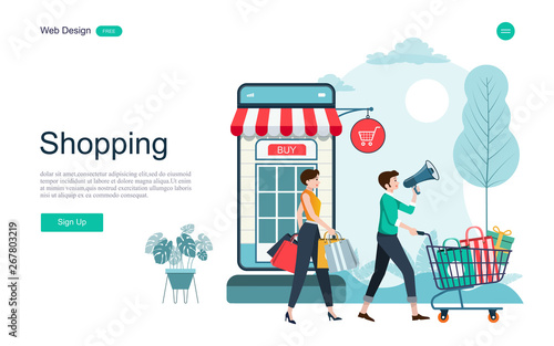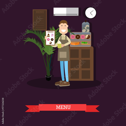 Люди останавливаются и разговаривают в очереди, чтобы купить еду в уличном кафе. Векторная иллюстрация в плоском стиле.