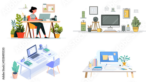 Люди, обучающиеся дома, в публичной библиотеке, плоская векторная изолированная иллюстрация. Студенты университета читают книги, пользуются компьютерами. Дистанционное обучение, дистанционное образование, домашнее обучение, онлайн-курсы.