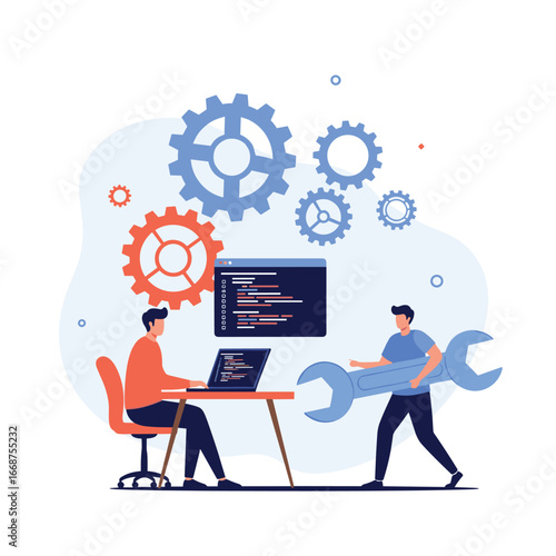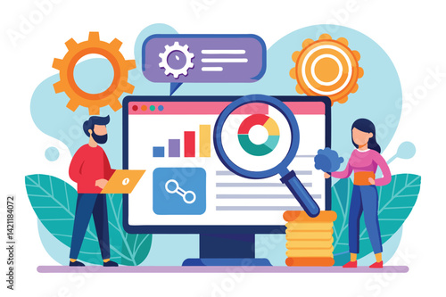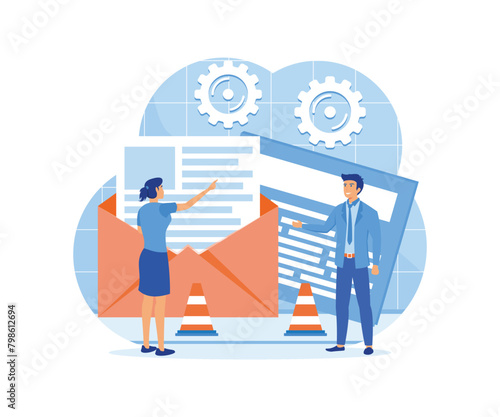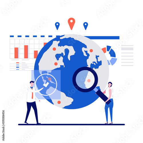 Гигантский мобильный телефон с приложением счетчика шагов, мужские и женские персонажи, отслеживающие ежедневные шаги, расстояние ходьбы, плоская векторная иллюстрация. Шагомер, отслеживание шагов и приложение для здравоохранения.