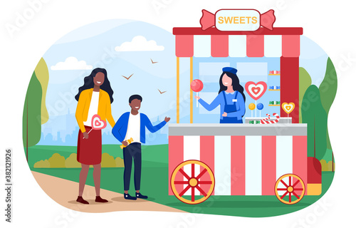 Люди ездят на электромобилях. Человек заряжает электрический фургон. Иллюстрация концепции путешествия на открытом воздухе. Векторный шаблон дизайна веб-сайта. Иллюстрация сайта целевой страницы