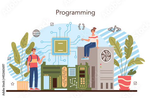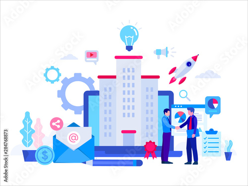 Гигантский портативный компьютер и крошечные персонажи мужского и женского пола, использующие мобильные устройства и беспроводное подключение к Интернету в зоне Wi-Fi, плоская векторная иллюстрация. Бесплатная точка доступа Wi-Fi, зона общественного доступа.