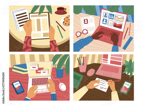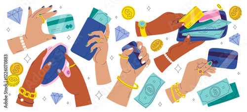 Люди смотрят фильм в кинотеатре. Пара покупает билет в кино. Набор постеров индустрии развлечений для фильмов. Векторная иллюстрация с попкорном, билетами в кино, катушкой и аудиторией людей.