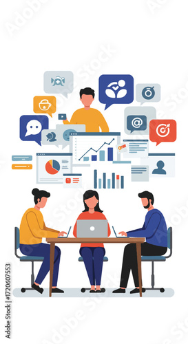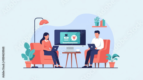 В кинотеатре люди носят маски и держатся на расстоянии. Социальное дистанцирование и профилактика коронавируса covid-19 в кино. Иллюстрация концепции. Векторный веб-шаблон. Попкорн, кинопленка, киношные очки.