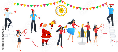 Люди различных профессий с мегафонами, векторная иллюстрация дизайна в плоском стиле, изолированная на белом фоне. Концепция объявления для веб-баннера, страницы веб-сайта и т.д.