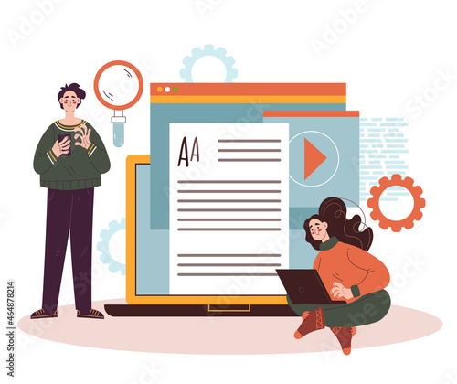 Людям нравится писать и читать стихи, прозу, плоские векторные иллюстрации. Литература и культура, поэтическое искусство, концепция литературного онлайн-журнала.