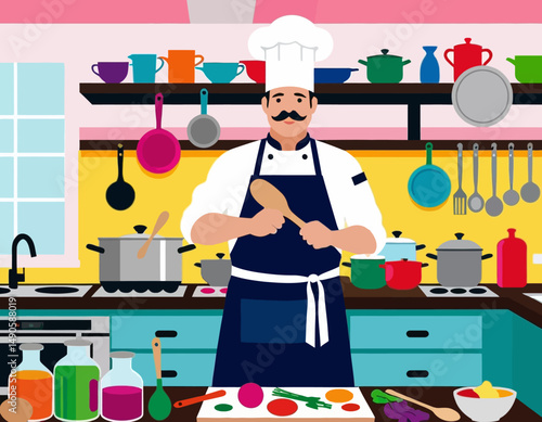 Парфюмерный магазин. Счастливая женщина с флакончиками духов в руках, плоская векторная иллюстрация. Парфюмерия, интерьер универмага с полками, полными парфюмерной продукции.