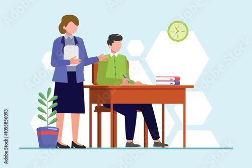 Векторная иллюстрация женщины-персонального менеджера банка и мужчины-клиента. Элемент дизайна концепции банковских услуг в плоском стиле.
