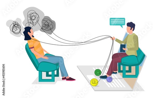 Личная онлайн-психотерапия, плоская векторная иллюстрация. Индивидуальное консультирование по вопросам психического здоровья через Интернет. Онлайн-психологическая помощь и поддержка.