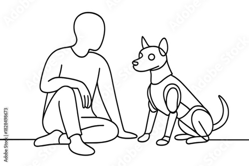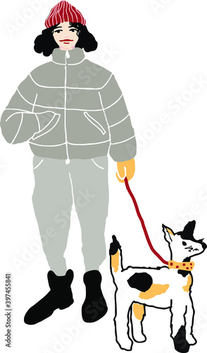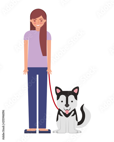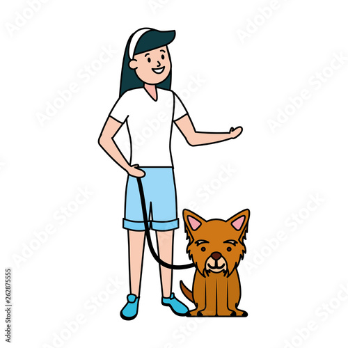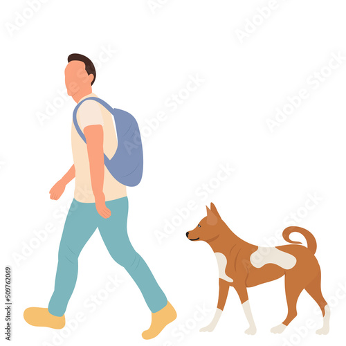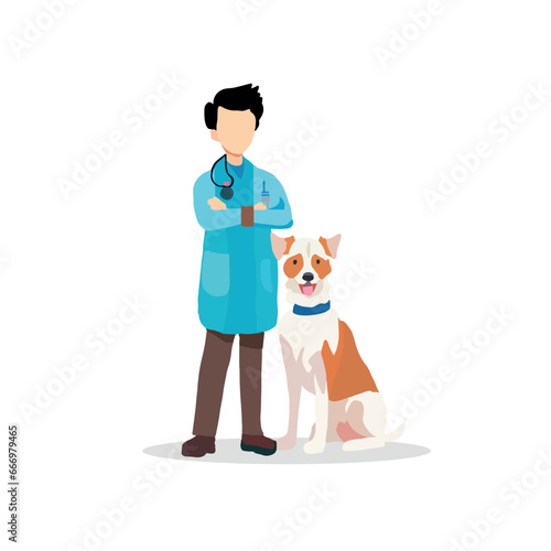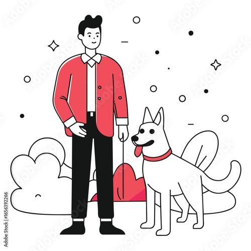 Владелец домашнего животного с векторной иконкой собаки. Любитель щенков мужского пола, стоящий изолированно на белом фоне. Портрет персонажа и собаки