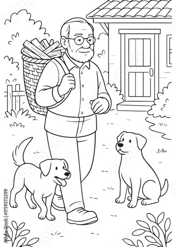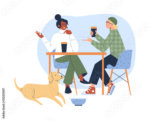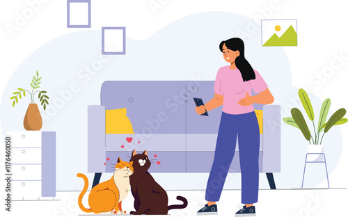 Женщина-владелица домашнего животного выгуливает вектор собаки. Иллюстрация женщины, убирающей собачьи какашки в общественный мусоропровод. Окружающая среда экологическая чистота и забота о домашнем животном