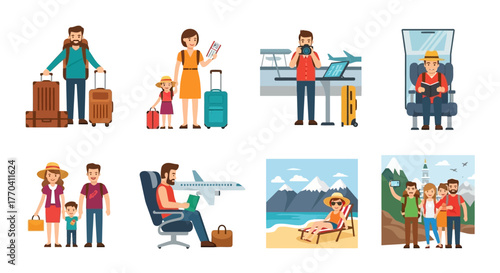 Набор векторных значков владельцев домашних животных. Люди со своими домашними животными кошкой, собакой, золотой рыбкой, кроликом, попугаем какаду, зеленой ящерицей игуаной и укротителем животных с тигром. Элементы дизайна в плоском стиле, выделенные на белом фоне