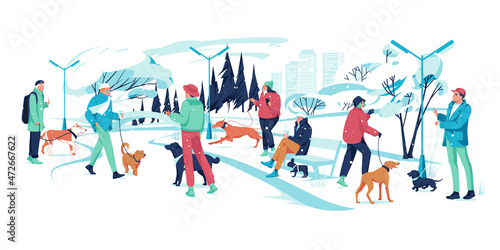 Иллюстрация дизайна в плоском стиле векторной концепции приюта для домашних животных. Мать со своим сыном усыновляют милую собачку из приюта для животных или спасательного центра. Усыновление бездомных домашних животных.