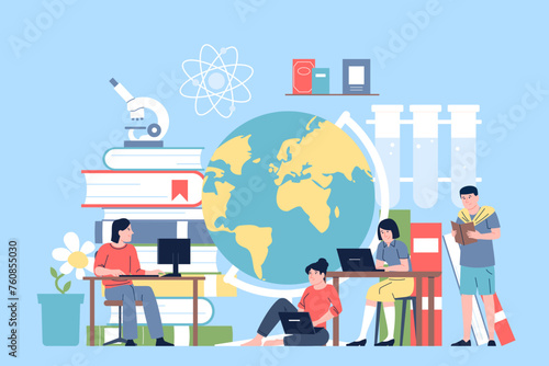 Векторная иллюстрация концепции фармацевтического бизнеса. Ученые исследуют новый препарат в лаборатории. Инвестиции в медицинский и фармацевтический бизнес. Фармацевтическая лаборатория.