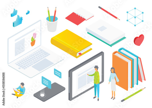 Инфографика аптечного магазина, векторная иллюстрация. Изометрический врач-фармацевт, обслуживающий клиента, стоящего у прилавка аптеки, отпускаемые по рецепту лекарства, лекарства для пациентов, другие медицинские принадлежности с ценами