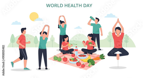 Векторная иллюстрация большой бутылки с таблетками с фармацевтом, ученым на этикетке, больными и здоровыми пациентами мультяшными персонажами. Концепция здравоохранения, фармацевтической промышленности для веб-баннера, страницы веб-сайта.