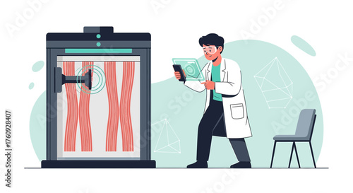 Концепция обслуживания ремонта телефона векторная иллюстрация. Мобильный телефон с разбитым экраном и разомкнутой микросхемой. Техник мужчины чинят смартфон.