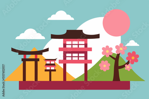Векторная иллюстрация фотографов, фотографирующих женщину и природу, пара, делающая селфи в кафе на горе. Элемент дизайна фотоконцепта в плоском стиле