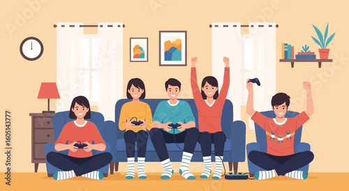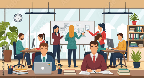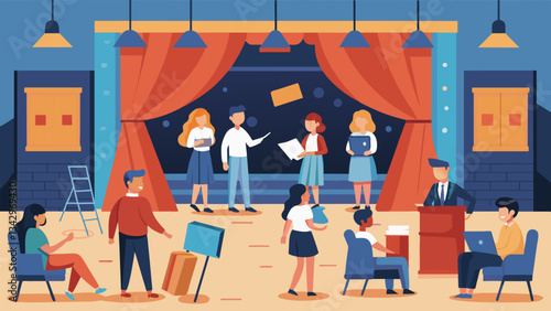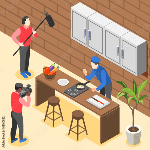 Фотограф, снимающий счастливую любящую пару и семейных персонажей профессиональной камерой в студии, плоская векторная иллюстрация. Профессия фотографа. Семейная фотосессия.