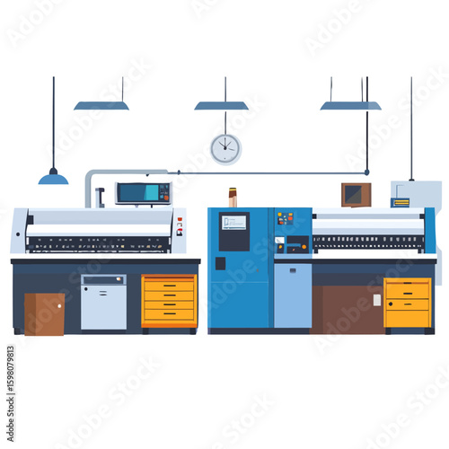 Векторная иллюстрация концепции физики в плоском стиле. интерьер лаборатории, физики проводят эксперименты с использованием лабораторной посуды и оборудования.