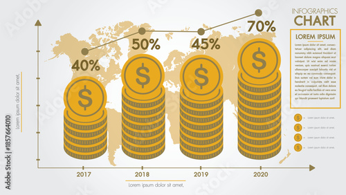 Груды монет с графическим графиком. Векторная концепция для финансовых рынков. Мировая фондовая биржа и нефтяные рынки. Цена на нефть по годам.