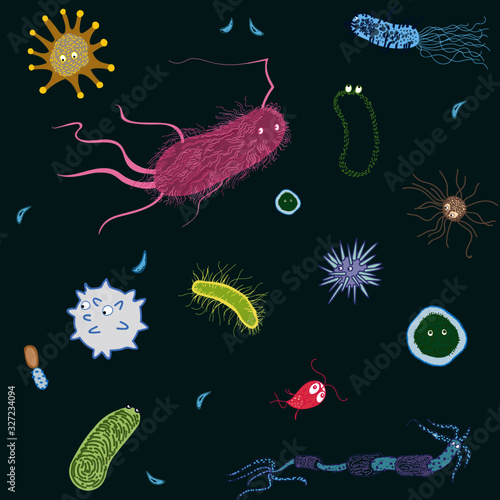 Набор планктонных, морских и пресноводных микроскопических организмов, плоская векторная изолированная иллюстрация. Фитопланктон и зоопланктон под микроскопом, живые существа.