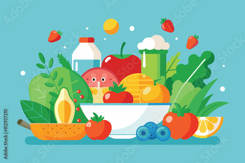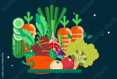 Растительные белки векторная иллюстрация дизайна в плоском стиле. Зеленый перец, помидоры, тофу, фасоль, нут, грибы, миндаль. Композиция растительных белковых продуктов для веб-баннера, веб-страницы и т.д.
