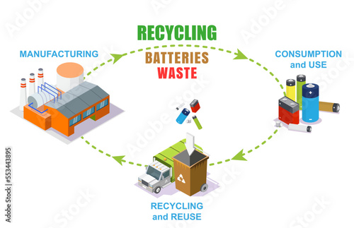 Вектор технологической схемы переработки пластика. Фабрика по сортировке и вторичной переработке отходов инфографическая изометрическая иллюстрация. Концепция сокращения загрязнения и мусора, сохранения земли и окружающей среды