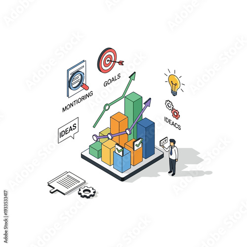 Схема процесса переработки пластика, векторная изометрическая иллюстрация. Сокращение загрязнения и отходов, сохранение Земли и окружающей среды с помощью технологий вторичной переработки.