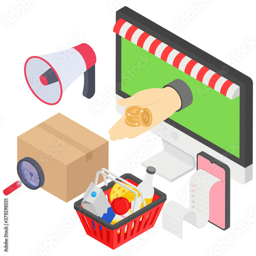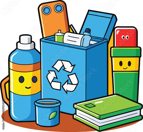 Вектор мусорного бака для вторичной переработки пластиковых отходов. Изометрический экологический контейнер для разделения мусора. Оранжевый ящик для вторичной переработки на белом фоне