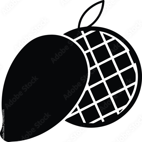 Векторная иллюстрация плодов сливы. Плоская иконка спелого чернослива. Сладкий органический ломтик с семенами и зелеными листьями, выделенный на белом фоне