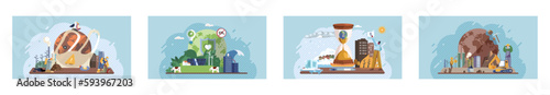 Векторная иллюстрация слесаря-трубочиста, ремонтирующего протекающие водопроводные трубы, работающего электрика и лесоруба. Сантехническая и электрическая компания обслуживает элементы дизайна в плоском стиле.