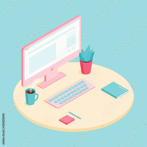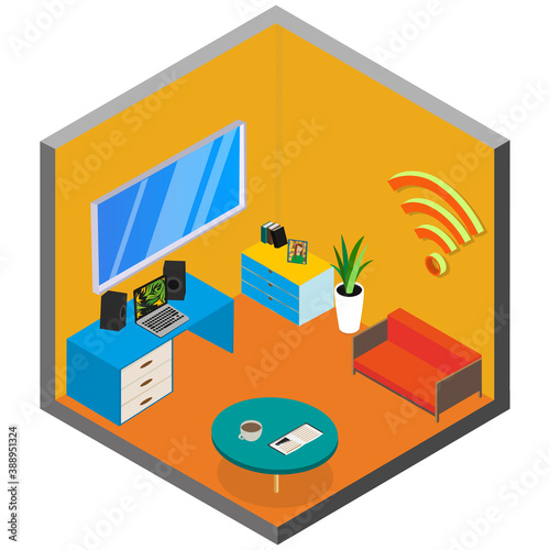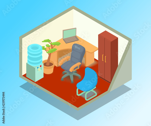 Концепция сантехнического обслуживания. Векторный изометрический вырез интерьера ванной комнаты с ремонтником, чинящим протекающую стиральную машину.