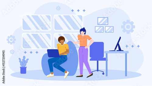 Люди, делающие подкаст в радиостудии, векторная иллюстрация. Концепция подкастинга, вещания, онлайн-радио для веб-баннера, страницы веб-сайта и т.д.
