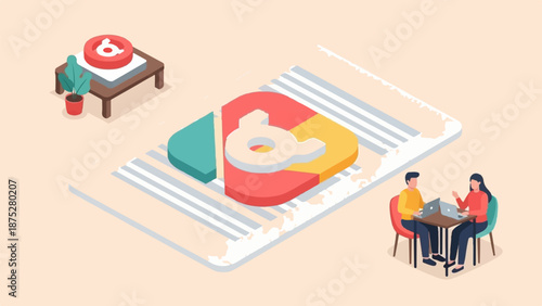 Векторная изометрическая иллюстрация человека-игрока в покер, играющего в покер с покерным ботом на мобильном устройстве. Элемент дизайна концепции покерного робота "Человек против машины".