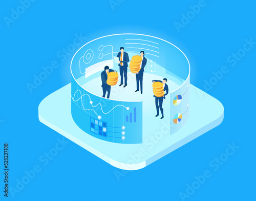 Полицейские патрулируют улицу, чтобы избежать нарушений комендантского часа, плоская векторная изометрическая иллюстрация. Оставайтесь дома в определенное время, в часы комендантского часа.