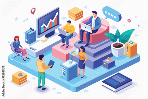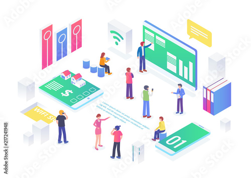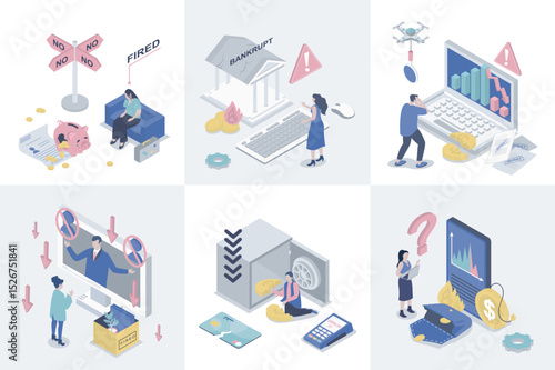 Изометрические элементы инфографики политических выборов и дебатов. Кандидаты в президенты, телестудия, оператор, кабина для голосования, графики результатов голосования.